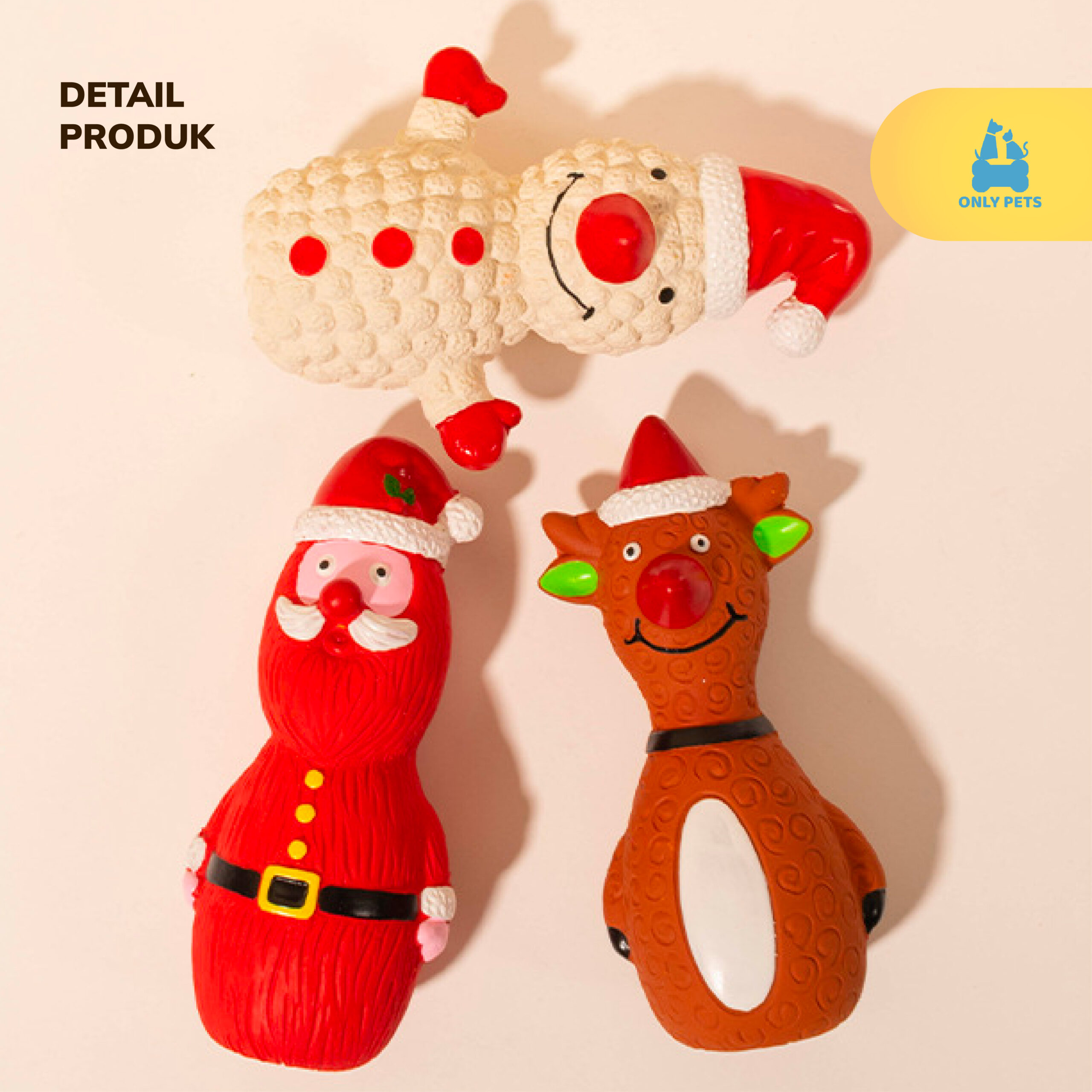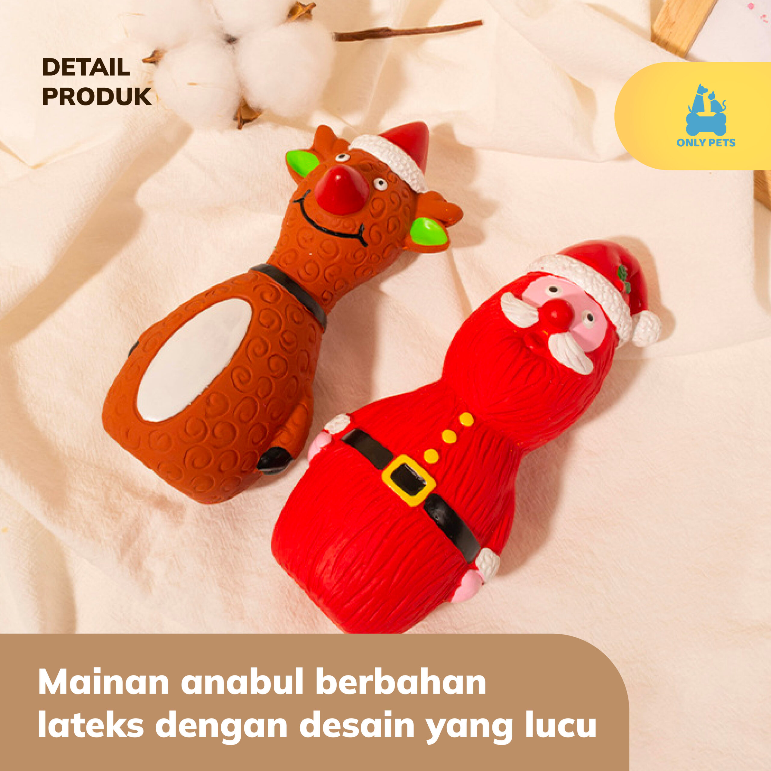 Desain khusus elemen-elemen Natal membuat anabul Pawparents semakin bersemangat bermain. Kesempurnaan ditambah dengan bahan yang tahan gigitan dan aman sehingga doggy dapat merasakan kepuasan gigitan yang sehat dan berlangsung lama.