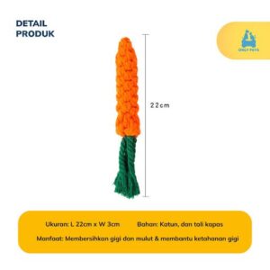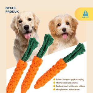 Untuk itu Pawparents harus selalu rutin mengajak anabul bermain biar anabul tetap merasa senang dan gak terus-terusan menggonggong yang bisa mengganggu ketenangan. Pawparents dapat mengajaknya bermain dengan Dog Chewing Toy yang berbentuk wortel dari Only Pets ini.