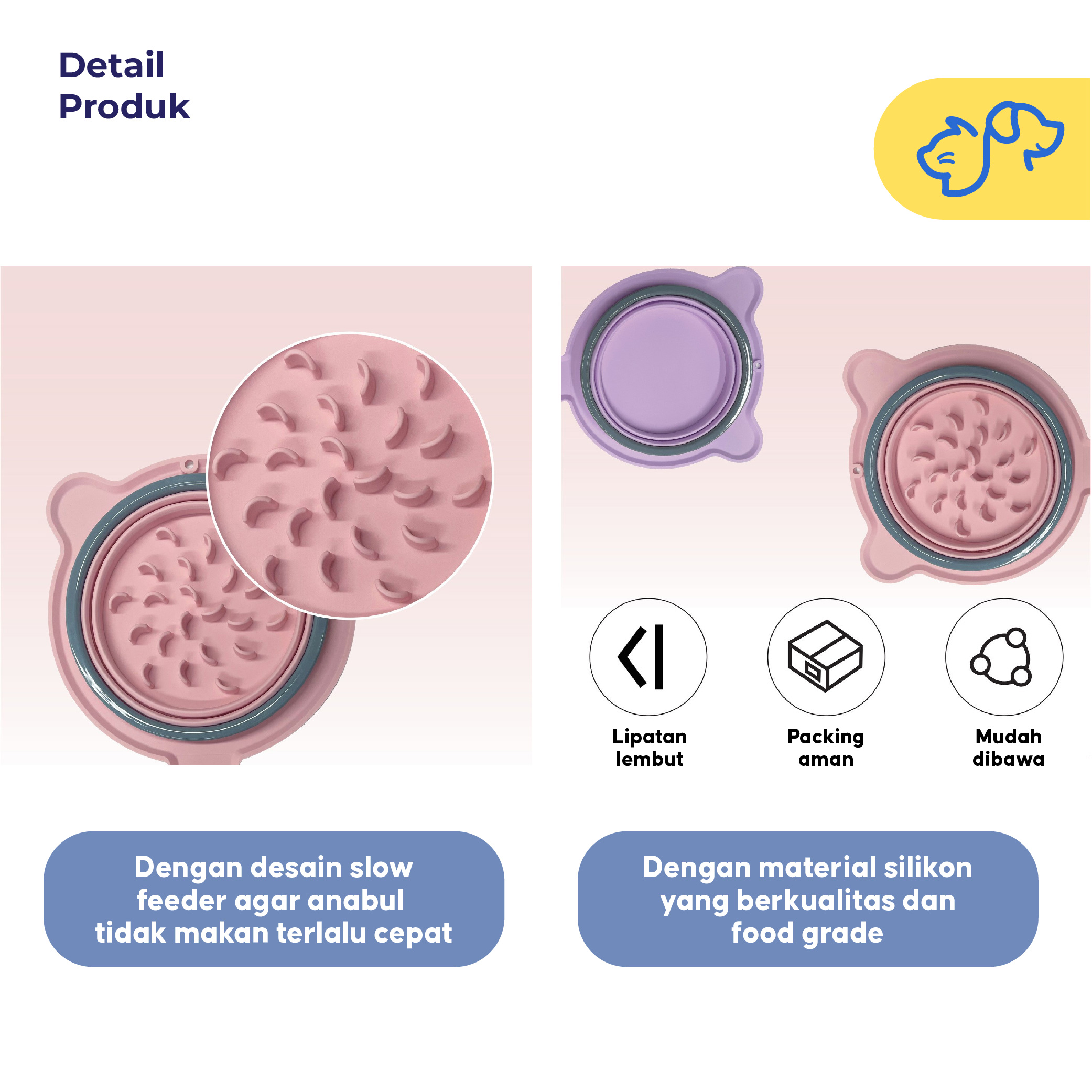 Bahan Aman & Tahan Lama — Terbuat dari silikon food-grade yang aman untuk anabul serta mudah dibersihkan.