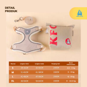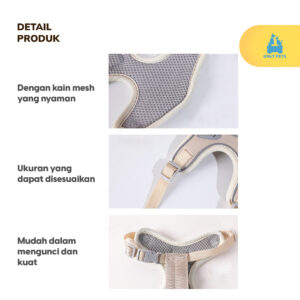 Dengan bahan berkualitas tinggi dan penyesuaian yang mudah, harness ini memberikan perlindungan dan kontrol yang diperlukan selama perjalanan. Bukan hanya itu, tetapi kantongnya yang praktis menambah sentuhan fungsionalitas, menjadikannya aksesori yang sempurna untuk pemilik hewan peliharaan yang aktif.