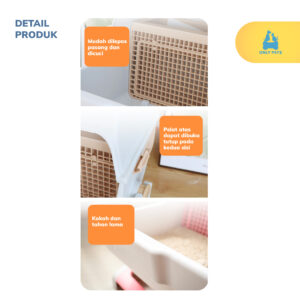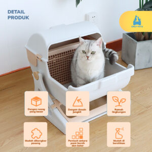 Dibuat dari bahan tahan lama dan mudah dibersihkan, menjadikannya pilihan ideal untuk Pawparents yang mengutamakan kebersihan dan kenyamanan. Sajikan kenyamanan terbaik untuk anabul kesayangan dengan litter box semi otomatis ini.