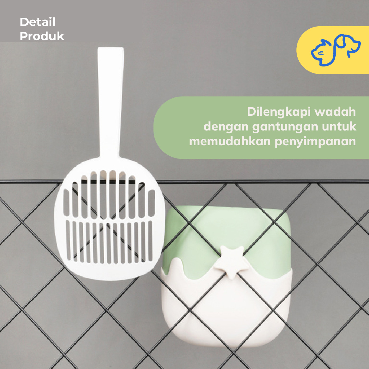 🐾 Dapat digantung: Terdapat gantungan pada wadah dan serokan yang bisa disimpan/ digantung dimana saja