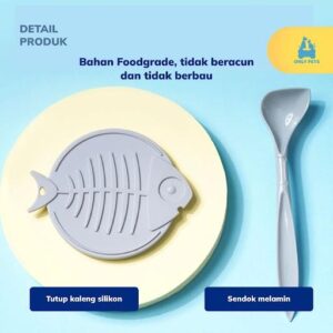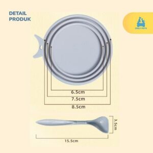 Alat ini merupakan penutup kaleng dan sendok yang digunakan untuk makanan kaleng anabul. Alat ini terbuat dari material silicone berkualitas yang sudah tersertifikasi food grade, sehingga sudah terjamin keamanannya, tidak beracun serta tidak berbau.