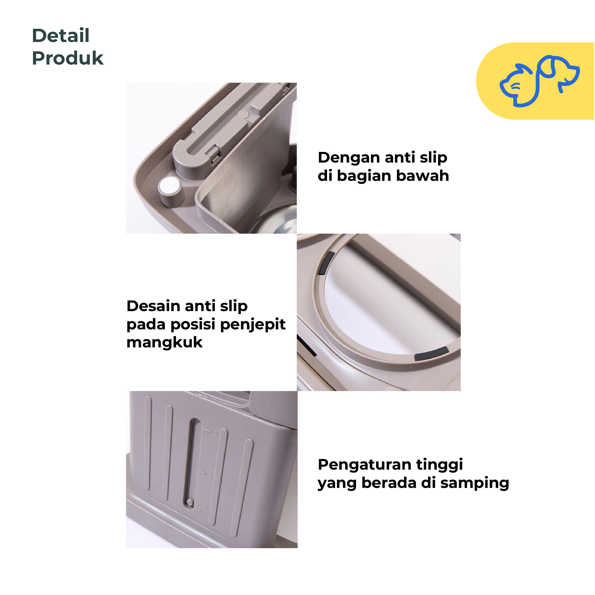 Dirancang khusus untuk Pawparents yang ingin memanjakan anabul, produk ini dapat diatur tingginya sesuai kebutuhan—tinggi untuk anjing besar, rendah untuk anjing kecil. Fleksibel banget, kan?