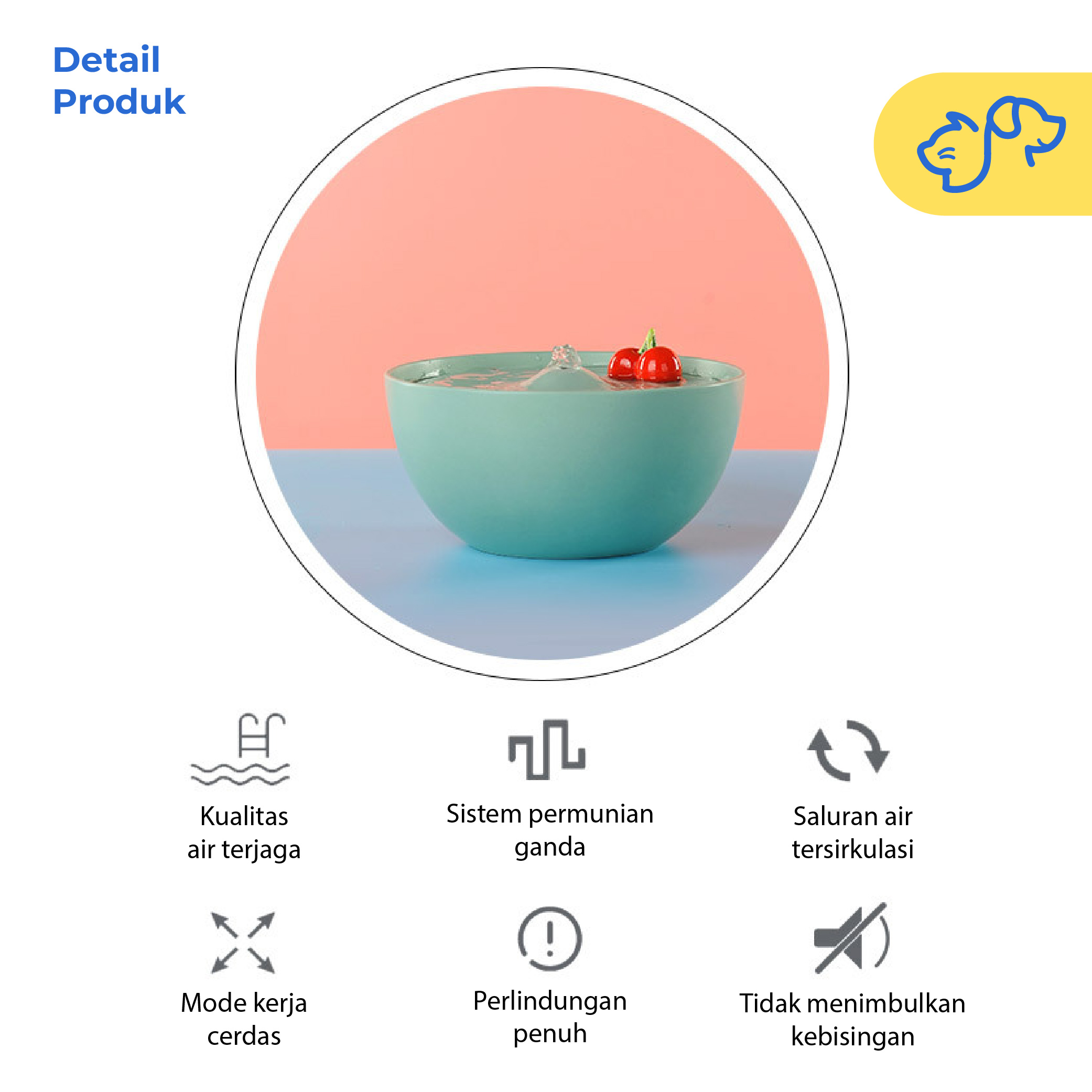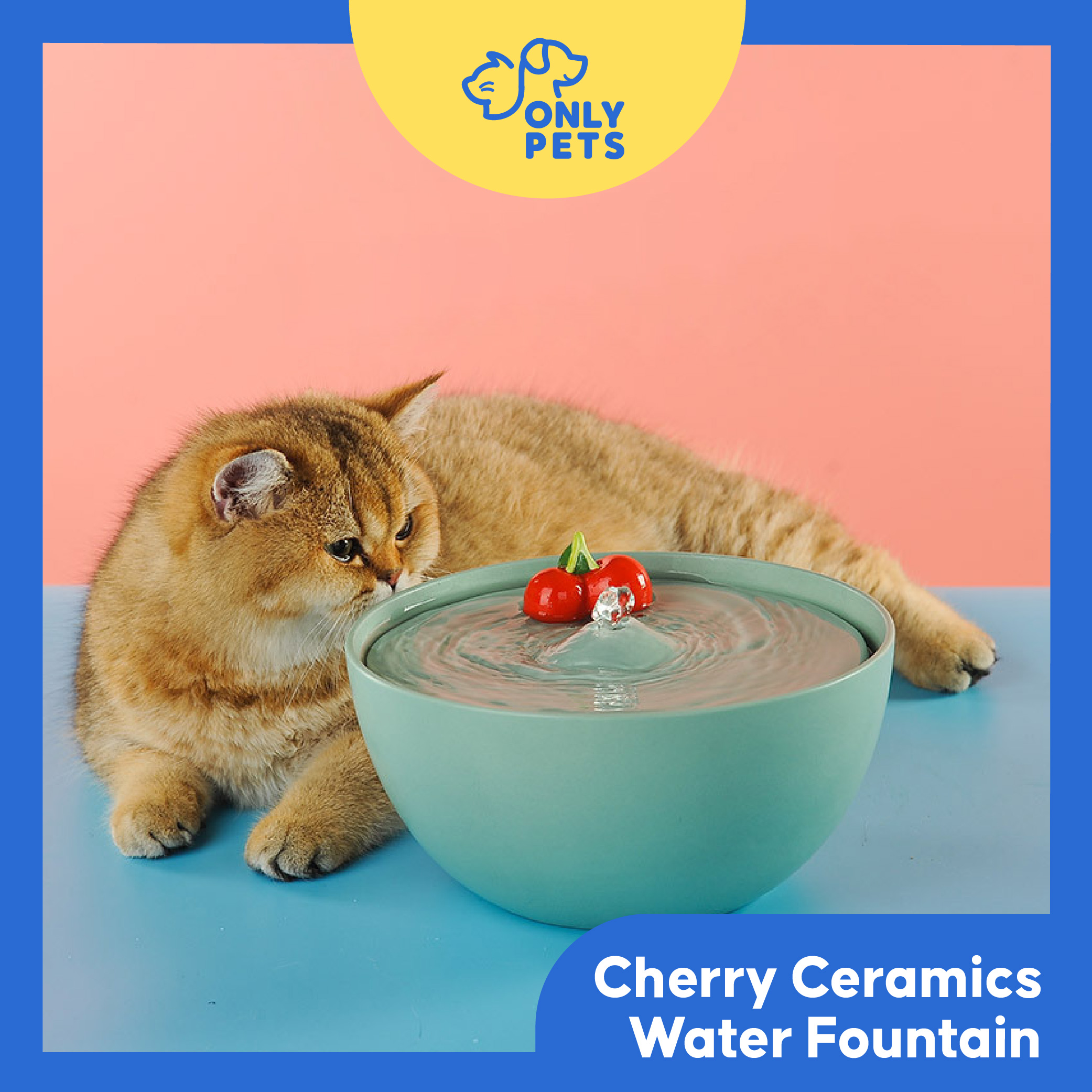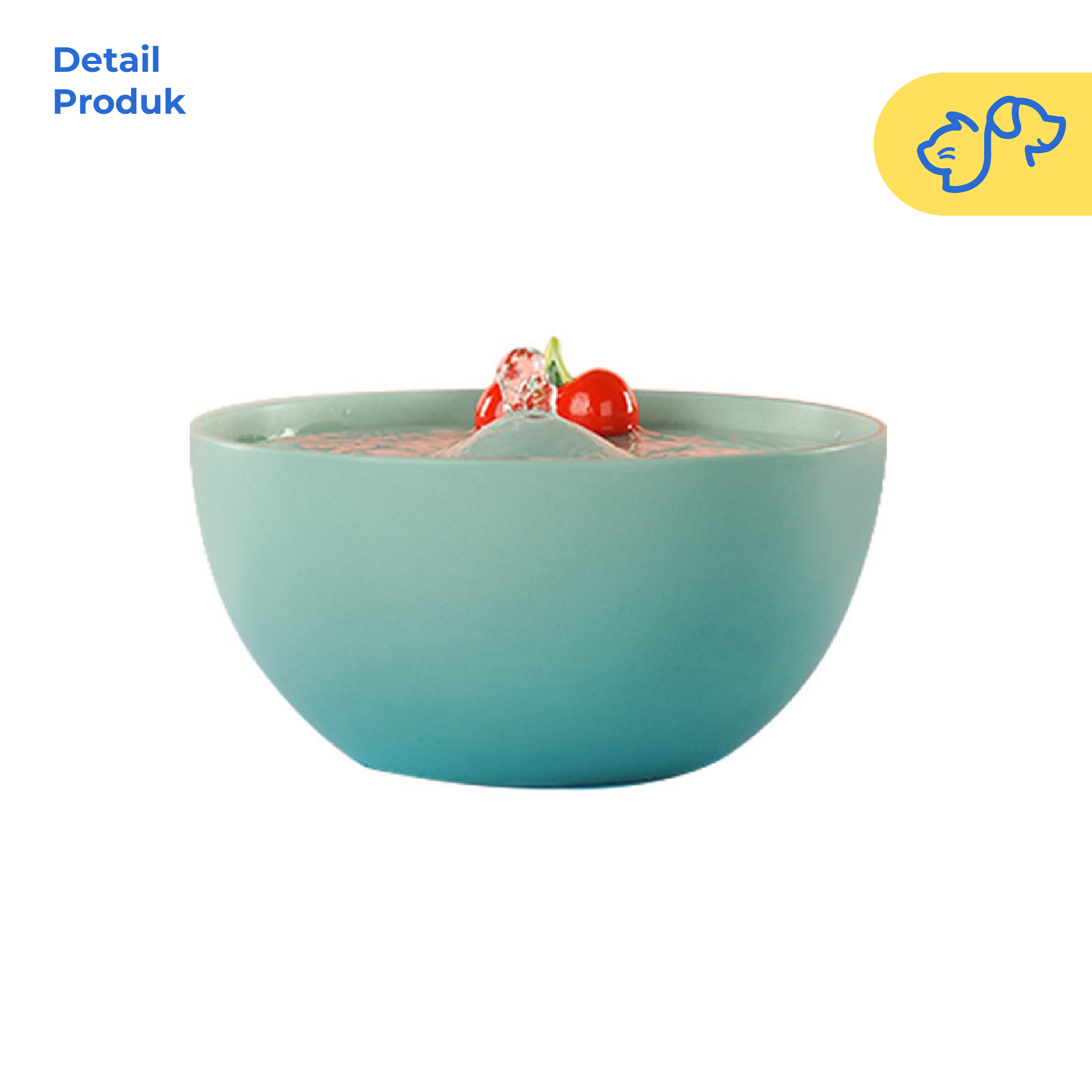 Water fountain keramik dengan hiasan cherry ini dirancang untuk memastikan anabul terhidrasi dengan baik karena sirkulasi air yang terus menerus menarik minat anabul untuk minum lebih sering
