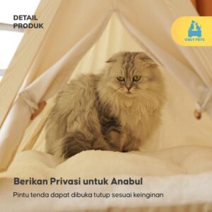 Pet Tent ini juga dilengkapi dengan tirai yang bisa digunakan sebagai pintu dan mudah dibuka tutup, yang dapat memberikan privasi untuk anabul kesayangan Pawparents.