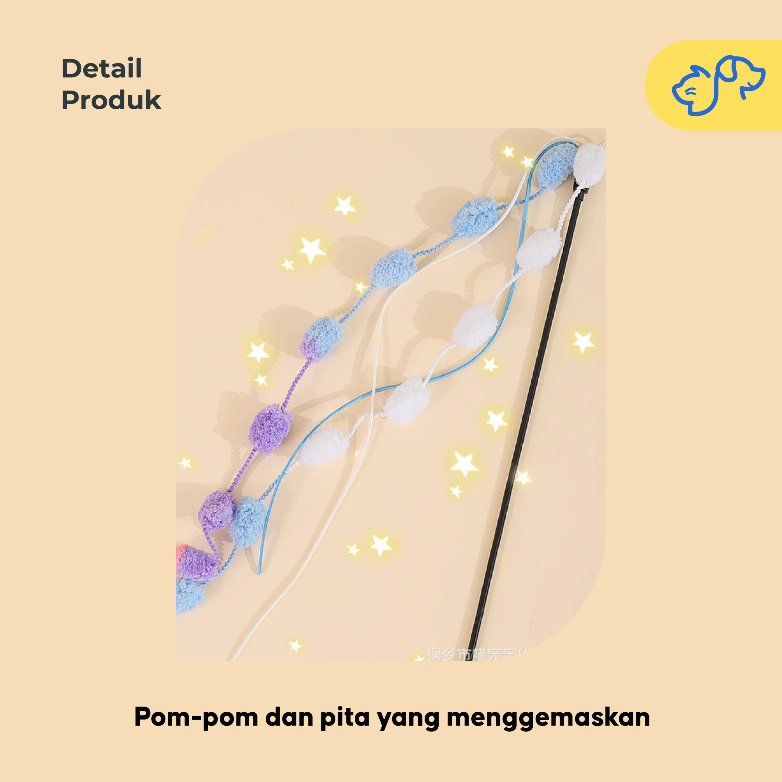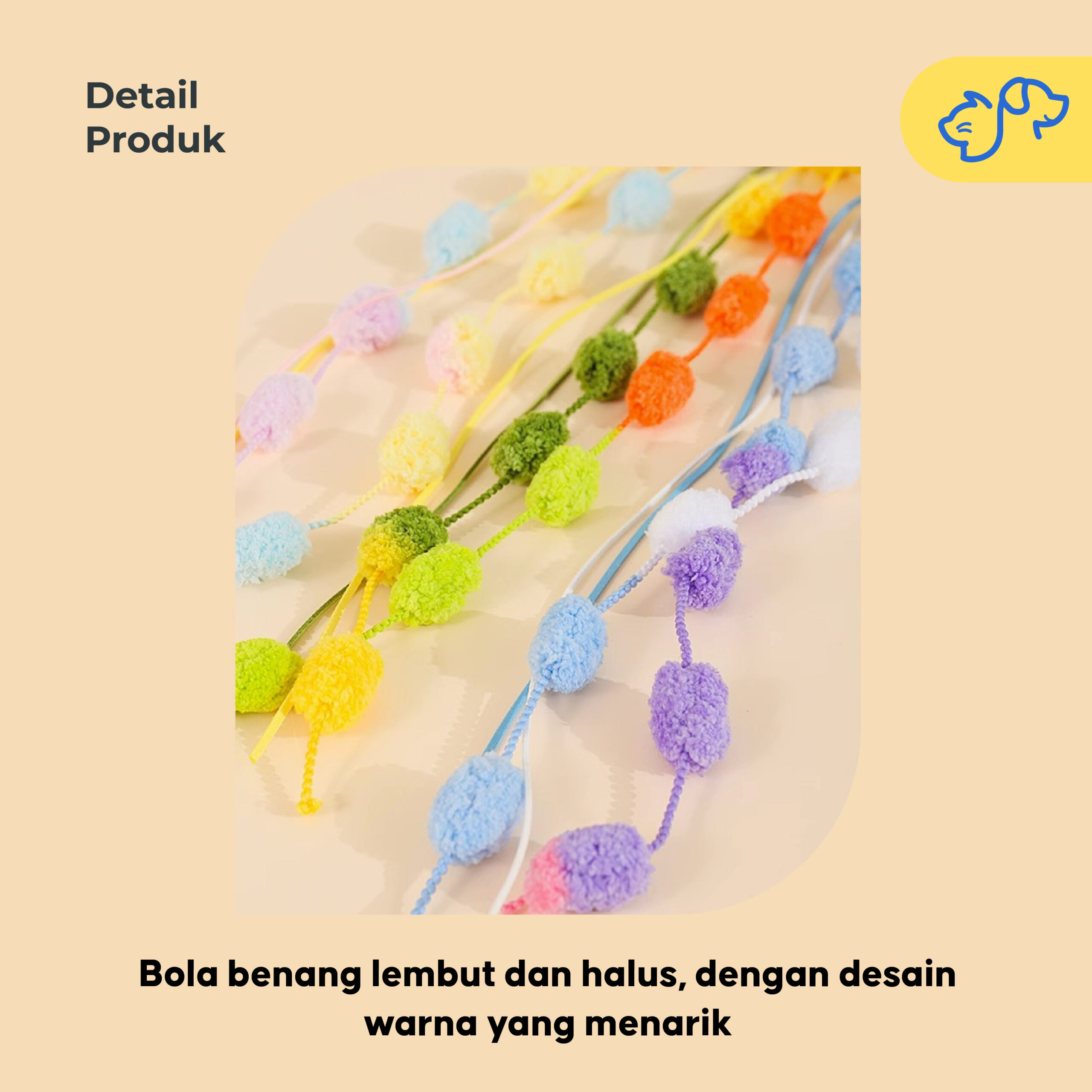 Proteksi Keamanan – Bahan ujung rumbai halus dan tidak tajam, aman untuk cakar dan hidung anabul.
