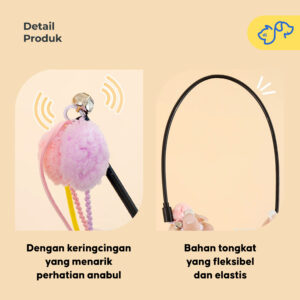 Flexible Resistant – Tongkat lentur dan kuat, tahan patah walau dimainkan aktif oleh anabul yang super enerjik.