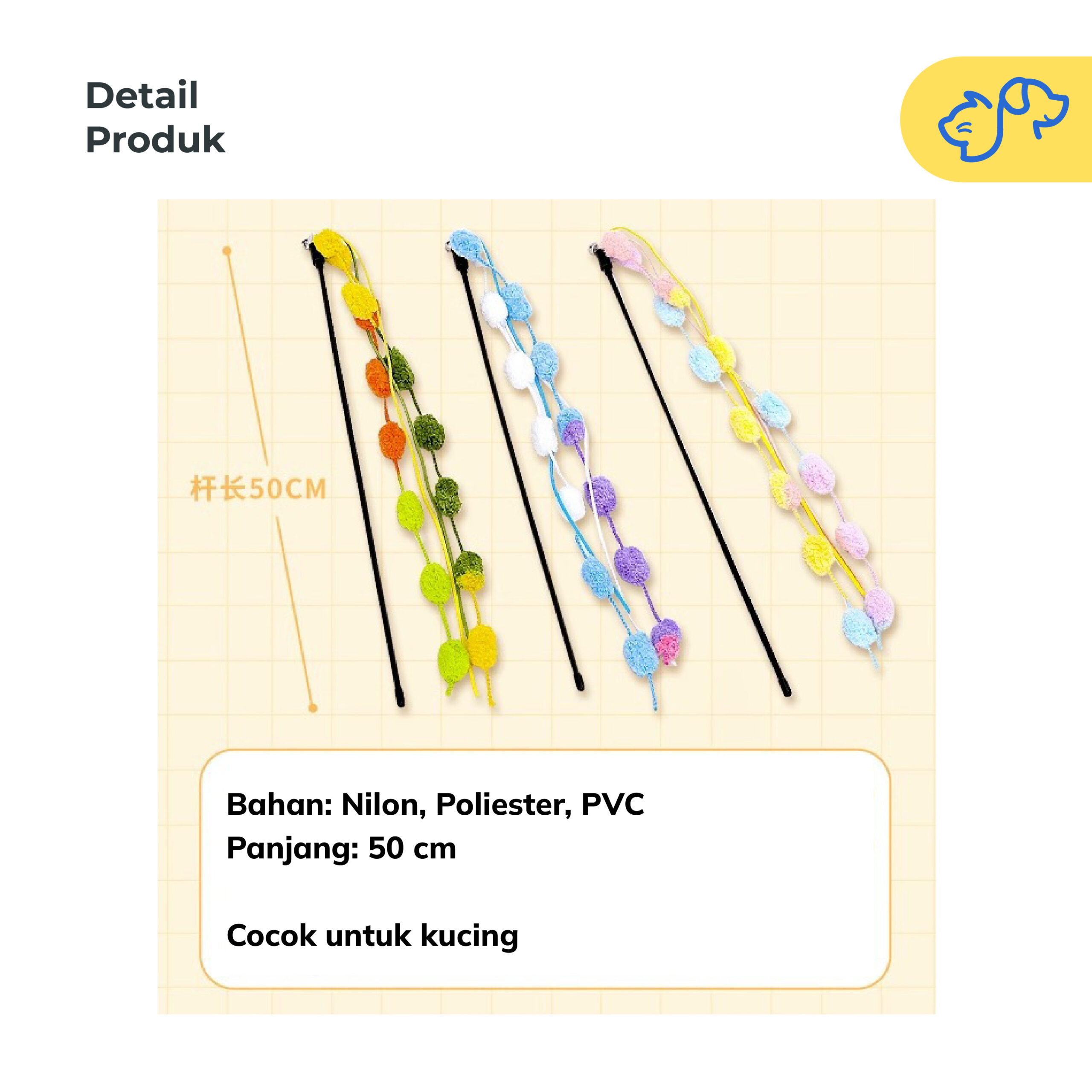 Waktunya seru-seruan bareng anabul kesayangan dengan Tongkat Mainan Kucing Lonceng Rumbai yang penuh warna! Didesain khusus untuk menghadirkan momen bermain yang aman, fleksibel, dan menyenangkan – mainan ini jadi pilihan wajib Paw Parents agar waktu bermain dengan anabul menjadi berkualitas.